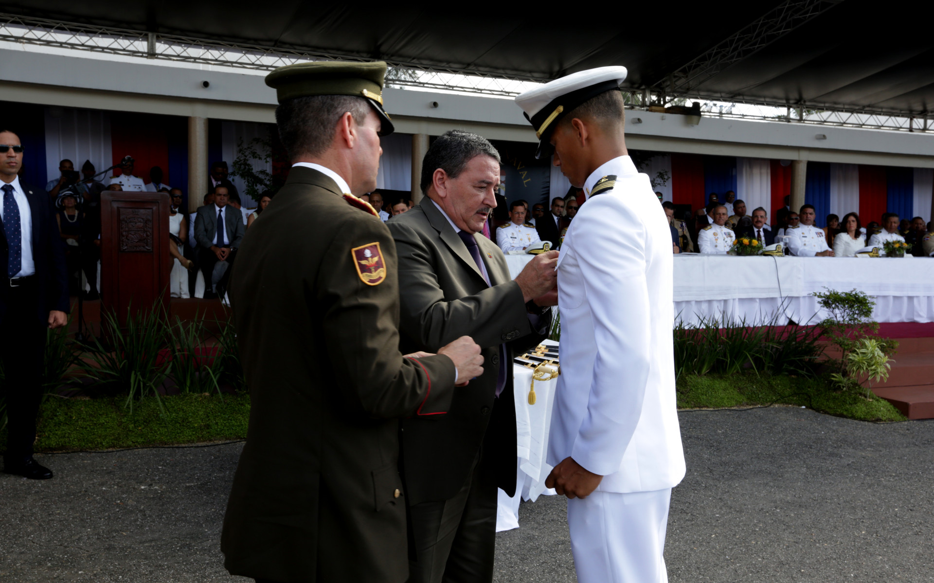 Imposición de insignias a los graduandos que los acredita como licenciados en Ciencias Navales. Foto: Raúl Pérez/Presidencia República Dominicana Nota de prensa: presidencia.gob.do/noticias/presidente-medina-encabeza-gr...