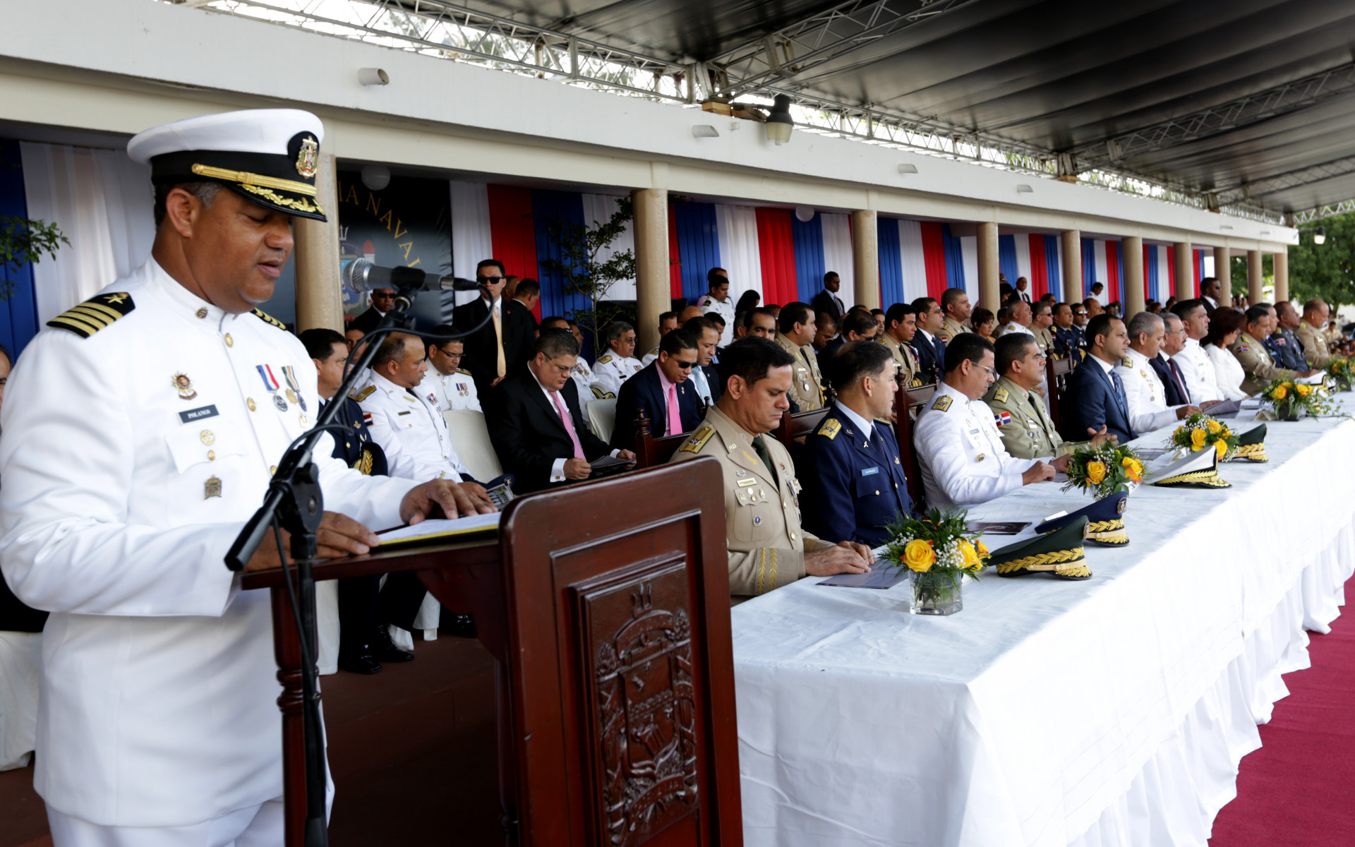 Al pronunciar el discurso central, el director de la Academia Naval, capitán de navío Frank R. Polanco de los Santos, expresó su agradecimiento al Mandatario y al ministro de Defensa por propiciar el impacto positivo que han tenido el remozamiento de las instalaciones académicas, que incluye mejoría en las aulas y cuartel de alistados, así como la ampliación del parque vehicular.