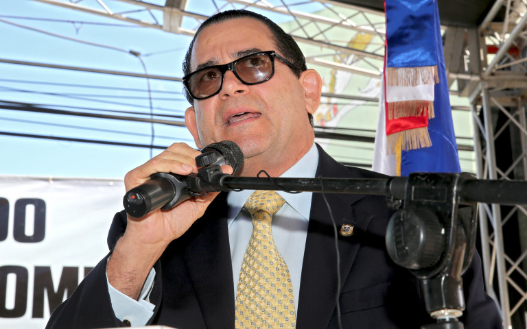 Participación del senador de la provincia Duarte, Amílcar Romero, al hablar durante el acto inaugural de la obra..