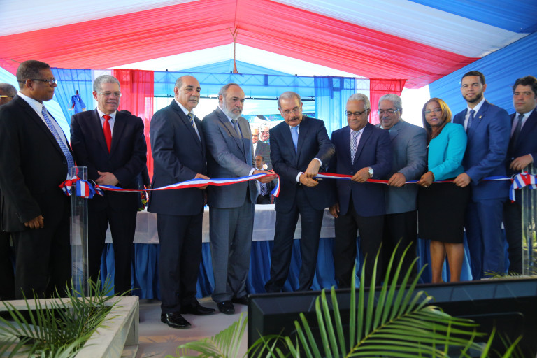 El presidente Danilo Medina corta la cinta inaugural del Hospital Municipal Jamao al Norte, en la provincia Espaillat, totalmente nuevo y equipado. De los 50 centros de salud intervenidos por el Gobierno, este es el número 29.