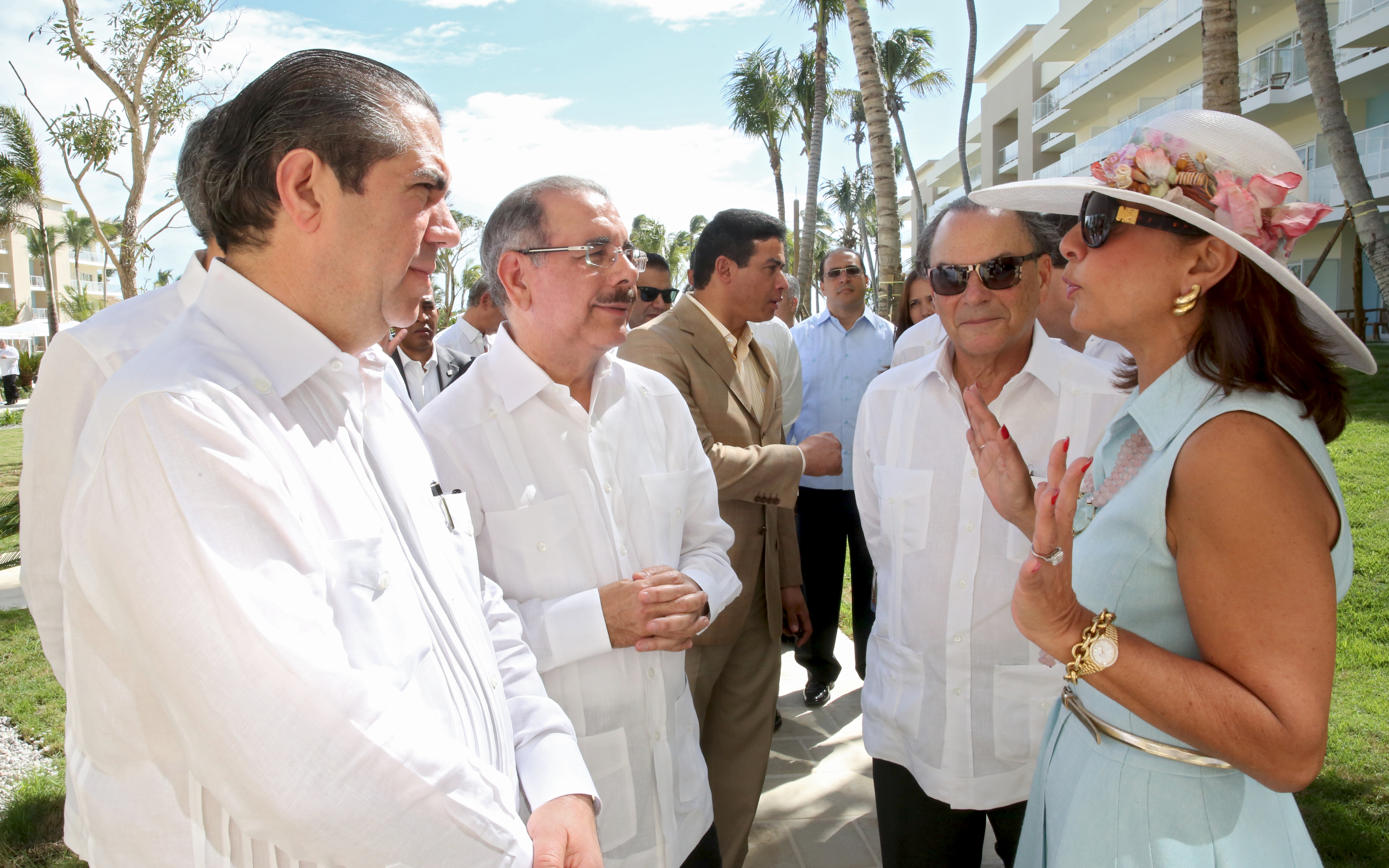 Presidente Medina conversa con Frank Rainieri y Haydée de Rainieri, presentes durante el recorrido por las instalaciones de The Westin Puntacana Resort & Club, luego de su acto inaugural.