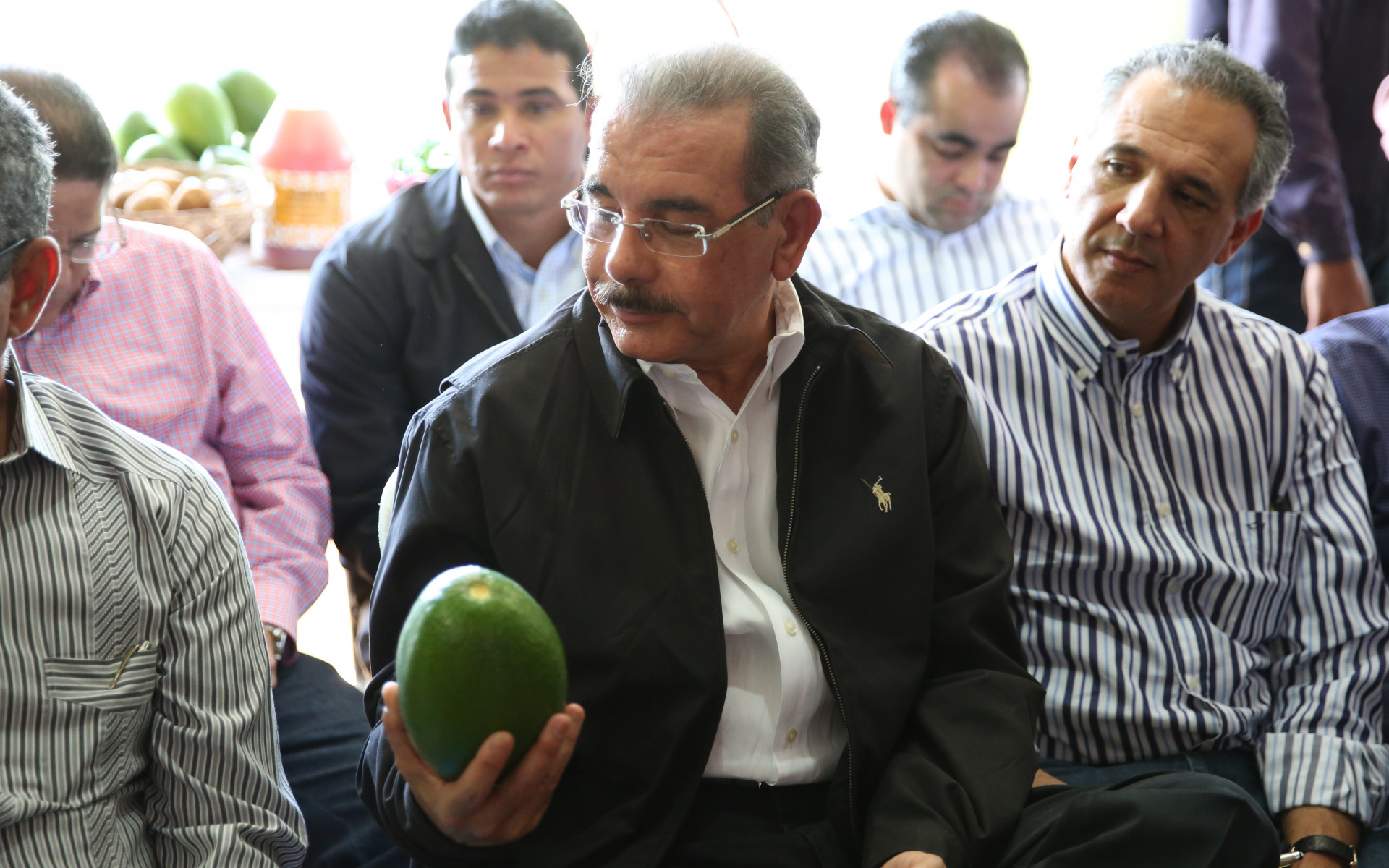 El presidente Medina al mirar un aguacate cultivado en la zona. Les comunicó que el 3 de enero venidero, una comisión irá nuevamente a El Llano para determinar el monto y la forma en que se les entregará el dinero solicitado.
