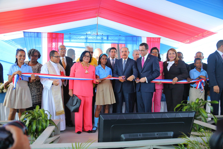 El presidente Danilo Medina corta la cinta para dejar inaugurado el nuevo Liceo Estado de Israel, ubicado en el sector Bellas Colinas de Manoguayabo, Santo Domingo Oeste.