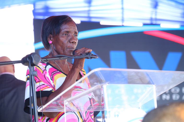 Anolfa Altagracia Germán, quien, con lágrimas de alegría y emoción, agradeció al gobierno del presidente Danilo Medina por convertirla en “una mujer feliz”, al dejar de pasar penurias en las precarias condiciones que ella y sus hijos vivían.