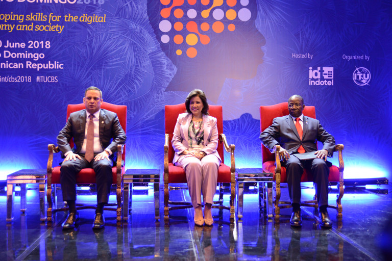Apertura del Simposio Mundial sobre Capacitación en Tecnología de la Información y la Comunicación (ITUCBS Santo Domingo 2018), encabezado por la vicepresidenta de la República, Margarita Cedeño junto a directivos de Indotel y de la Unión Internacional de Telecomunicaciones (UIT).