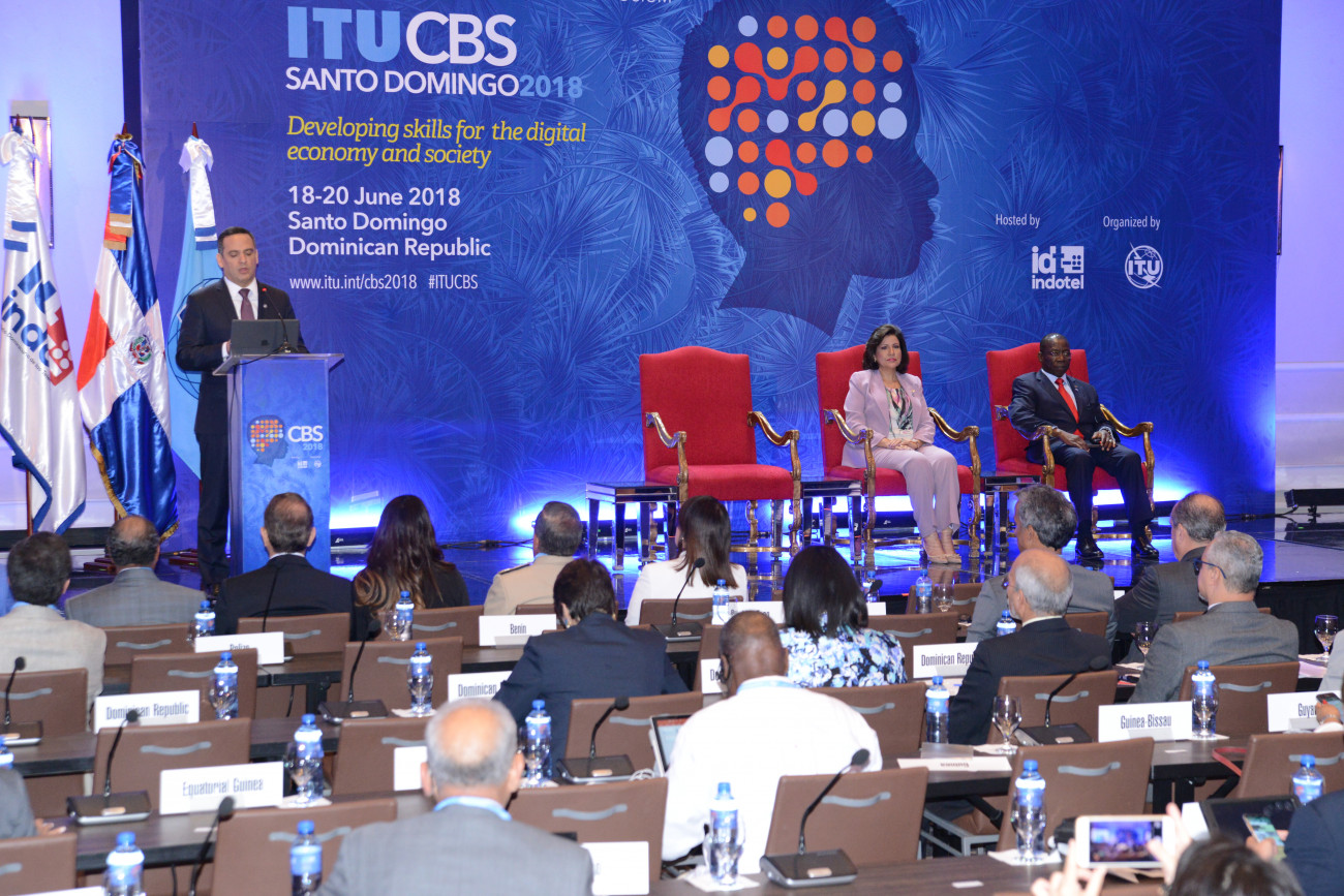 Apertura del Simposio Mundial sobre Capacitación en Tecnología de la Información y la Comunicación (ITUCBS Santo Domingo 2018), encabezado por la vicepresidenta de la República, Margarita Cedeño junto a directivos de Indotel y de la Unión Internacional de Telecomunicaciones (UIT).