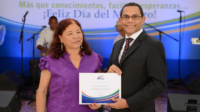 El director general del Instituto Nacional de Formación Técnico Profesional (INFOTEP), Rafael Ovalles, encabezó el acto de celebración por el Día del Maestro, reconociendo tan ardua labor.