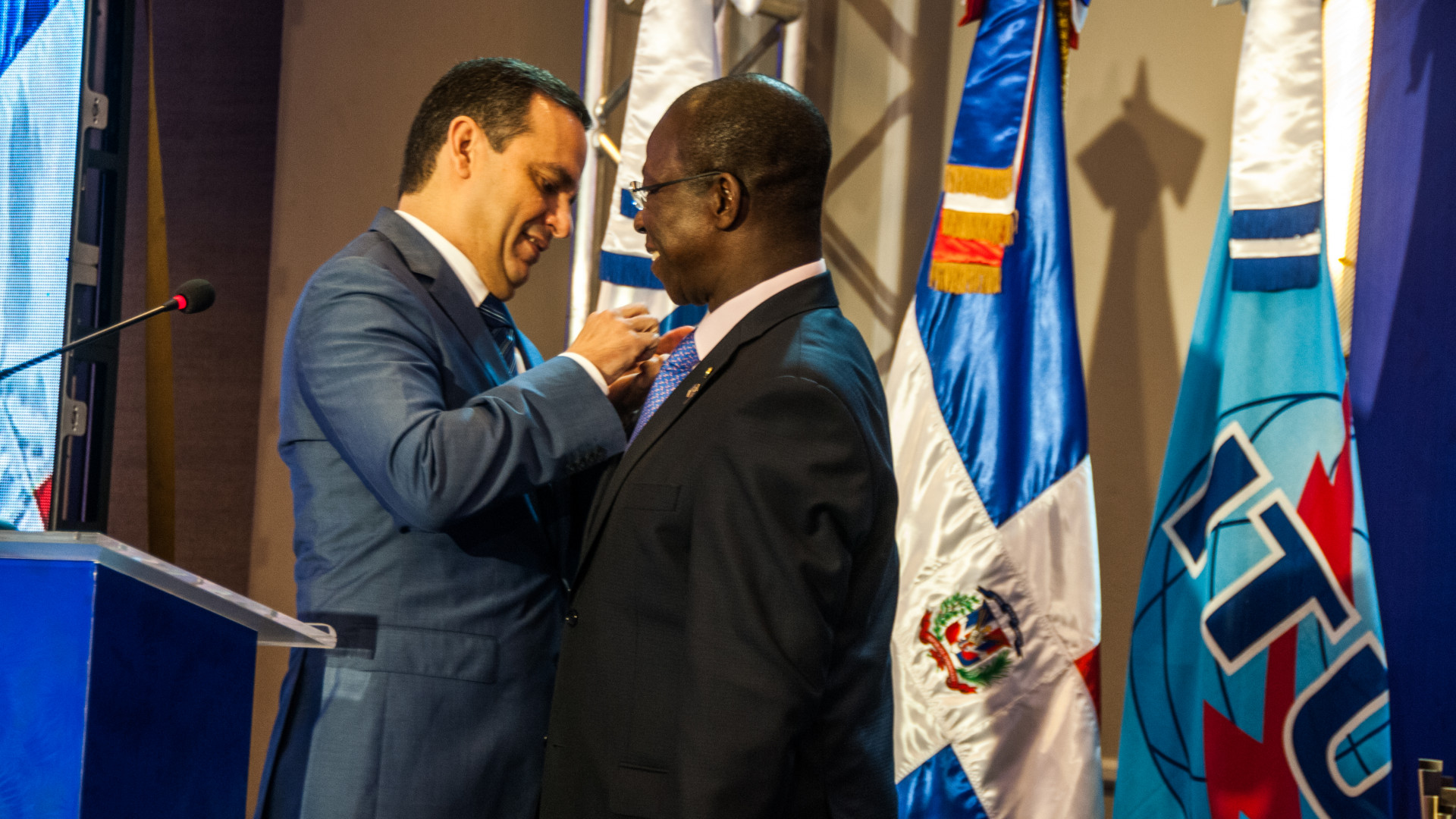 El presidente del consejo directivo del Indotel, Luis Henry Molina, y el director de la Oficina de Desarrollo de las Telecomunicaciones, Brahima Sanou, durante el acto de clausura. Foto: Presidencia República Dominicana Enlace noticia: presidencia.gob.do/noticias/indotel-y-union-internacional... Video YouTube: www.youtube.com/watch?v=bZRkGZ375Ww