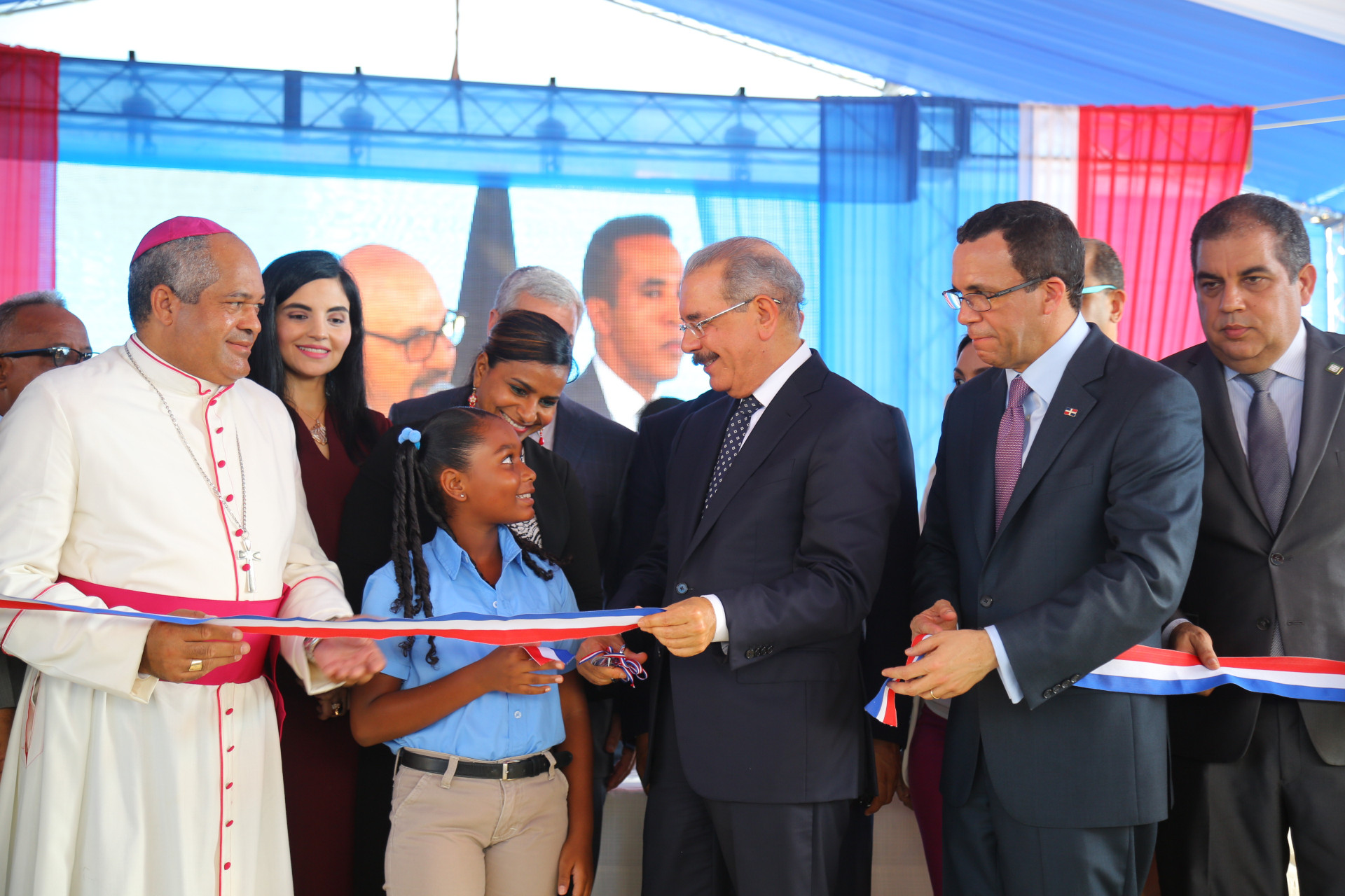 Con aplausos y alegría, estudiantes y maestros de Villa Montellano, en Puerto Plata, recibieron hoy la Escuela Básica Juan Lockward y dos estancias infantiles, en acto encabezado por el presidente Danilo Medina.