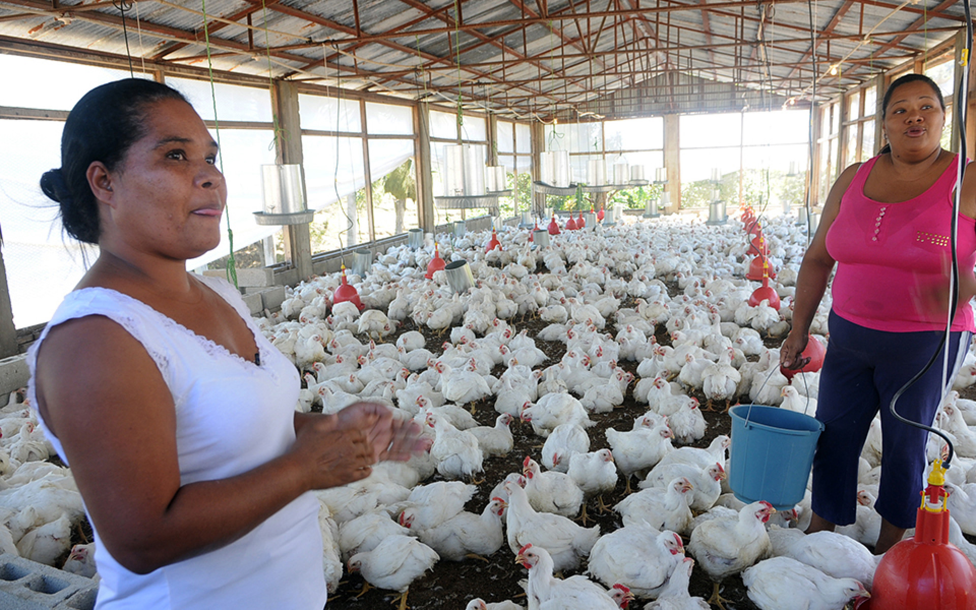 Dominga Ramírez y Esmeralda Recio cuentan que hicieron una carta al FEDA (Fondo Especial para el Desarrollo Agropecuario), que Danilo Medina las visitó, creyó en ellas, dijo que eran mujeres emprendedoras, les trajo los pollos, el financiamiento por 2.3 millones de pesos, el alimento, los bebederos y comederos y –Dominga hace un chasquido con sus dedos- "así pudimos, porque los pollos están en buen estado y buen peso".