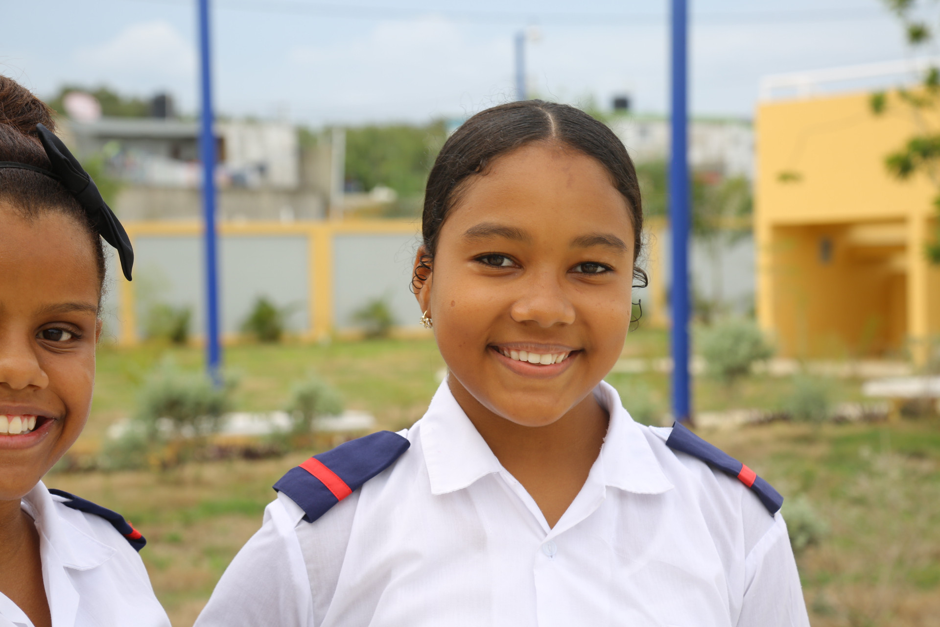 Estudiantes felices por la apertura del Centro de Educación Secundaria Pedro Mir, entregado hoy por el presidente Danilo Medina en el sector Invidorex, en Santo Domingo Este.