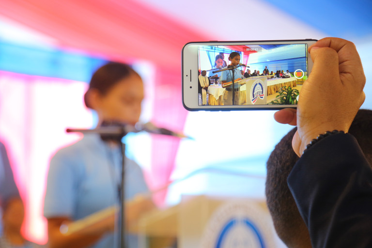 Acto de inauguración del Centro de Educación Secundaria Pedro Mir, entregado esta tarde por el presidente Danilo Medina en el sector Invidorex, en Santo Domingo Este.