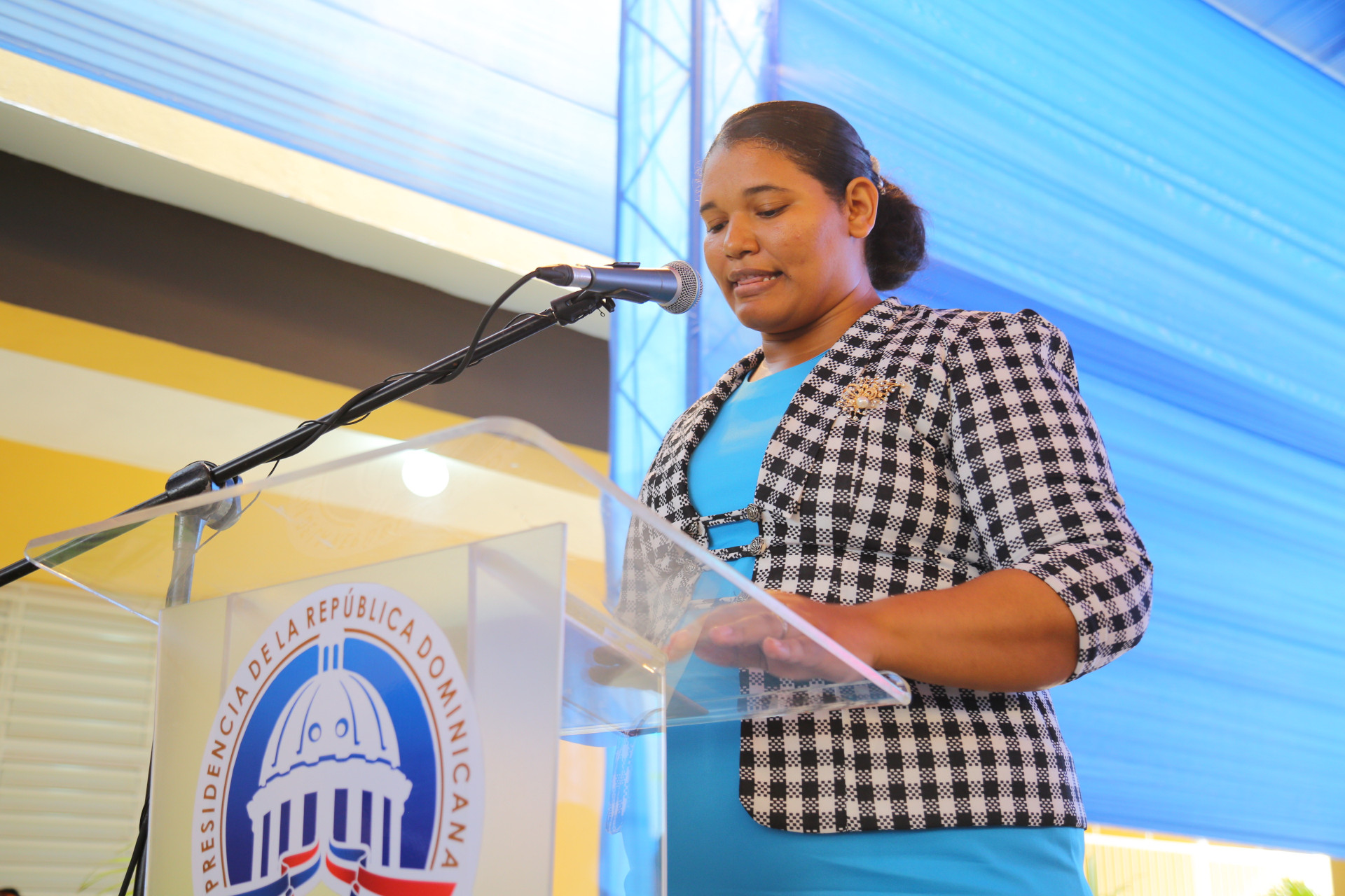 Directora del Centro de Educación Secundaria Pedro Mir, Maireni Yanira Díaz, durante su discurso para dar las gracias en nombre de la comunidad educativa.