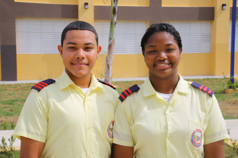 Estudiantes felices por la apertura del Centro de Educación Secundaria Pedro Mir, entregado hoy por el presidente Danilo Medina en el sector Invidorex, en Santo Domingo Este.