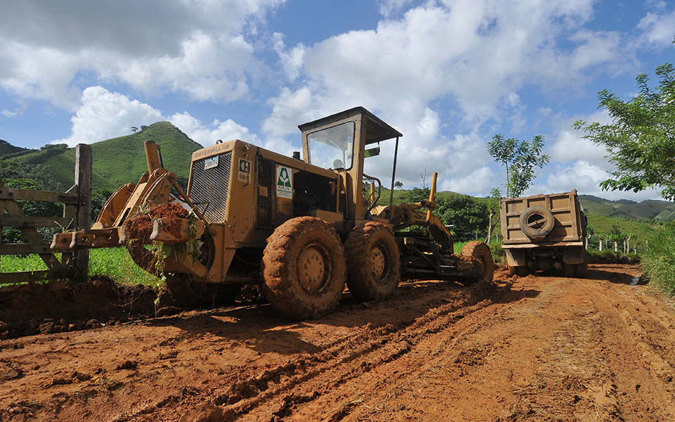 Equipos pesados trabajando durante el acondicionamiento de los caminos vecinales.