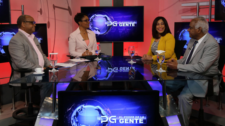 Diosmary De León, coordinadora del Eje de Educación del Ministerio de la Presidencia; Horacio Placido Gómez, viceministro del MESCyT, y conductores del programa El Poder de la Gente.