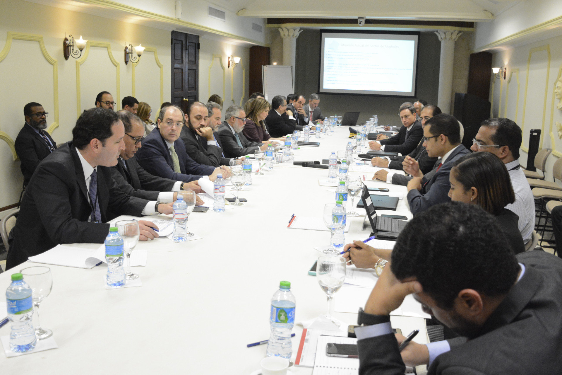Imágenes de la reunión encabezada por el ministro de la Presidencia, Gustavo Montalvo, con integrantes de la Mesa Presidencial contra el Contrabando, Falsificación e Informalidad de Bienes, efectuada hoy en el Salón Hermanas Mirabal, del Palacio Nacional. Foto: Presidencia República Dominicana Enlace Noticia: presidencia.gob.do/noticias/gobierno-refuerza-acciones-co...