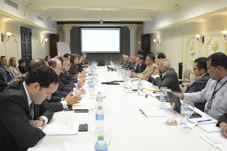 Imágenes de la reunión encabezada por el ministro de la Presidencia, Gustavo Montalvo, con integrantes de la Mesa Presidencial contra el Contrabando, Falsificación e Informalidad de Bienes, efectuada hoy en el Salón Hermanas Mirabal, del Palacio Nacional.