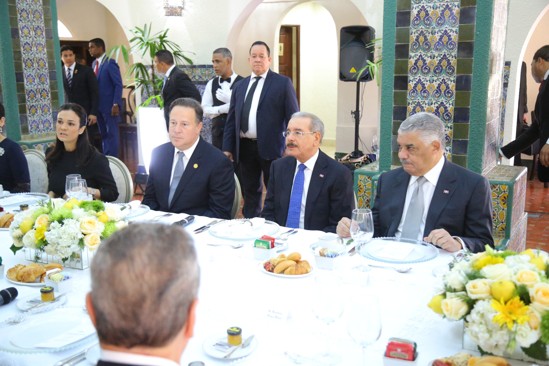 El presidente Danilo Medina y el canciller dominicano, Miguel Vargas, comparten con los presidentes, Salvador Sánchez Cerén, de El Salvador; Juan Carlos Varela, de Panamá; Carlos Alvarado, de Costa Rica; y Jimmy Morales, de Guatemala, entre otros altos dignatarios, presentes en el desayuno ofrecido previo a la reunión de la #CumbreSICARD2018. #RDEsIntegración