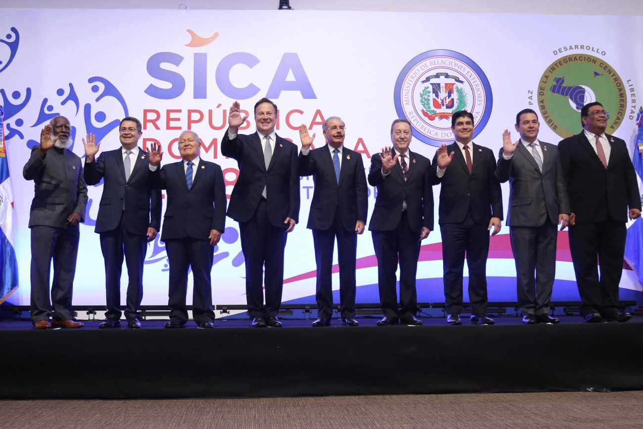 Foto oficial de la 51va Reunión de Jefes de Estado y de Gobierno del SICA, celebrada en el país. Figuran entre ellos, desde izquierda a derecha, Wilfred Elrington, ministro de Asuntos Exteriores de Belice; Juan Orlando Hernández, presidente de Honduras; Salvador Sánchez Cerén, de El Salvador; Juan Carlos Varela, de Panamá; Danilo Medina, de República Dominicana; Vinicio Cerezo, secretario general del SICA y expresidente de Guatemala; Carlos Alvarado, de Costa Rica; Jimmy Morales, de Guatemala; y el ministro secretario para Asuntos del Caribe de Nicaragua, Valdrack Jaentshke. #CumbreSICARD2018.