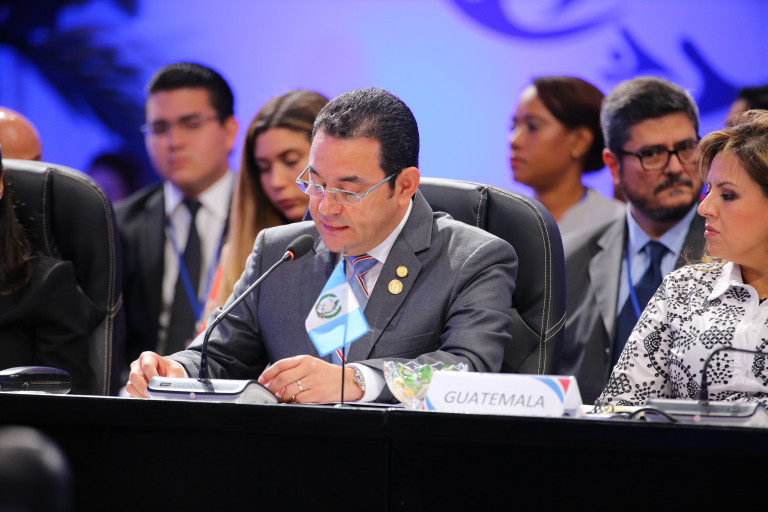 Jimmy Morales, presidente de Guatemala, durante su alocución en la 51va reunión del SICA .