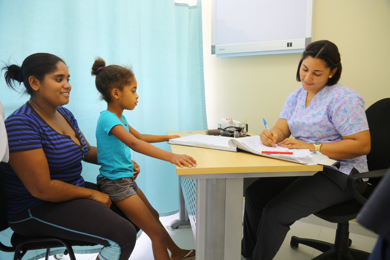 Madre y su hija al ser atendidas por una de las doctoras de Hospital Municipal de Cabral, en Barahona, entregado hoy por el presidente Danilo Medina.