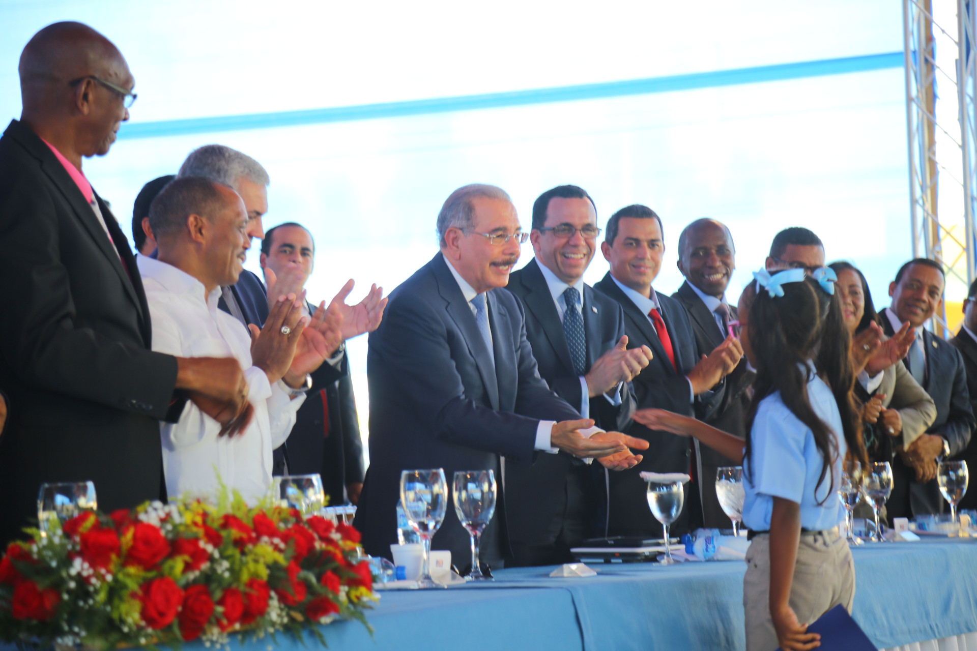 Acto de entrega de la nueva Escuela Básica Prof. Amparo García Maldonado, encabezado por el presidente Danilo Medina, en El Carril de Haina, provincia San Cristóbal.