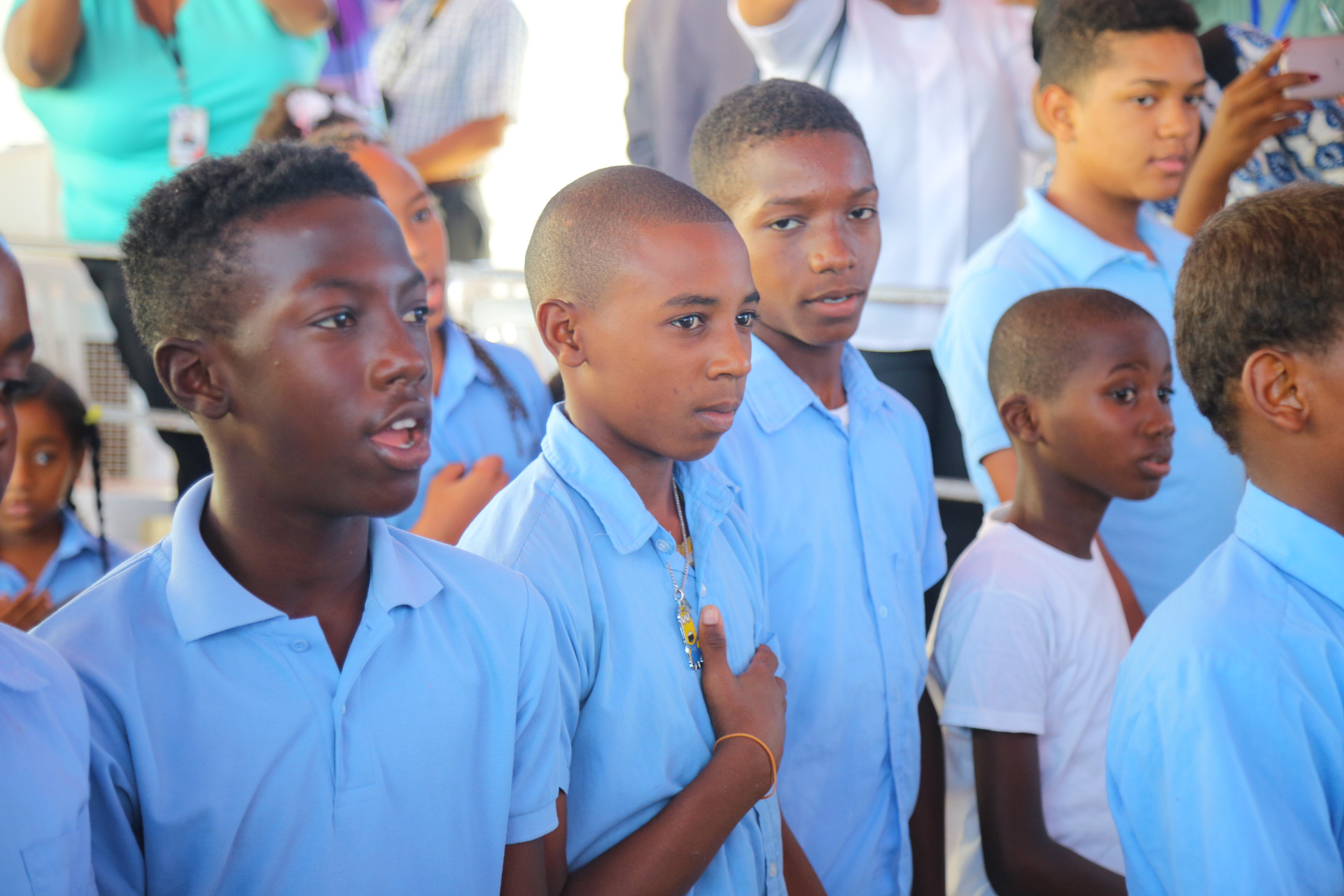 Acto de entrega de la nueva Escuela Básica Prof. Amparo García Maldonado, encabezado por el presidente Danilo Medina, en El Carril de Haina, provincia San Cristóbal.