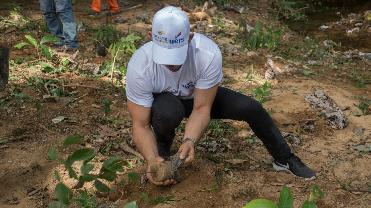 Participantes de la Jornada simultánea de reforestación: Barrick Pueblo Viejo-Unidad de Electrificación Rural y Suburbana (UERS), realizada en las Dos Palmas, Las Cuevas de Zambrana y Maricao.