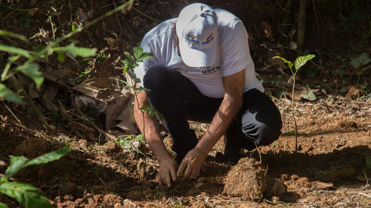 Participantes de la Jornada simultánea de reforestación: Barrick Pueblo Viejo-Unidad de Electrificación Rural y Suburbana (UERS), realizada en las Dos Palmas, Las Cuevas de Zambrana y Maricao.