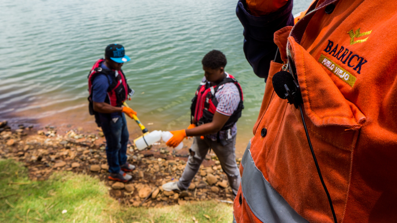 Representantes de la Barrick Pueblo Viejo y comunitarios de Cotuí, en la provincia de Sánchez Ramírez, durante labores de recuperación ambiental en la zona.