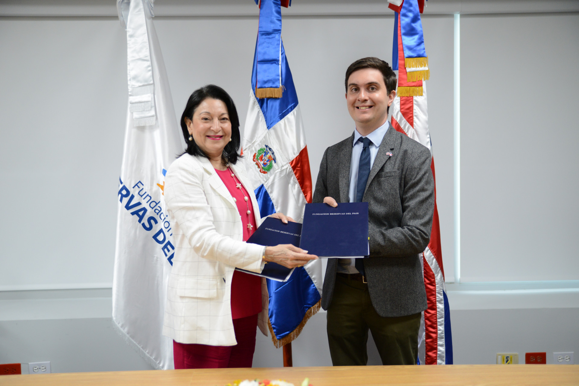 Rosa Rita Álvarez, presidenta ejecutiva de la Fundación Reservas del País y Maxwell Irving, subjefe de Misión de la Embajada Británica en Santo Domingo, con ocasión de la firma del acuerdo en representación de ambas instituciones. Foto: Presidencia República Dominicana Enlace noticia: presidencia.gob.do/noticias/acuerdo-reservas-del-pais-y-e... Video YouTube: www.youtube.com/watch?v=qMs8lytmUCE