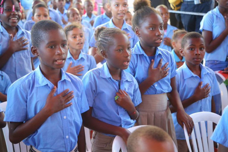 Acto de inauguración de la Escuela Básica Fernando de la Cruz, en la comunidad Sierra Prieta de Villa Mella, encabezado por el presidente Danilo Medina.