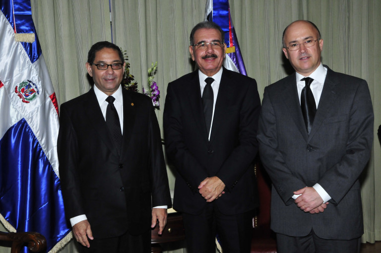 El presidente de la Suprema Corte de Justicia y del Consejo del Poder Judicial, Mariano Germán, el presidente Danilo Medina y Francisco Domingo Brito, procurador General.