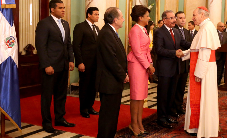Participación del presidente Danilo Medina acompañado de su esposa señora Cándida Montilla de Medina, al recibir los saludos de Año Nuevo del cardenal Nicolás de Jesús López Rodríguez, en el Palacio Nacional.