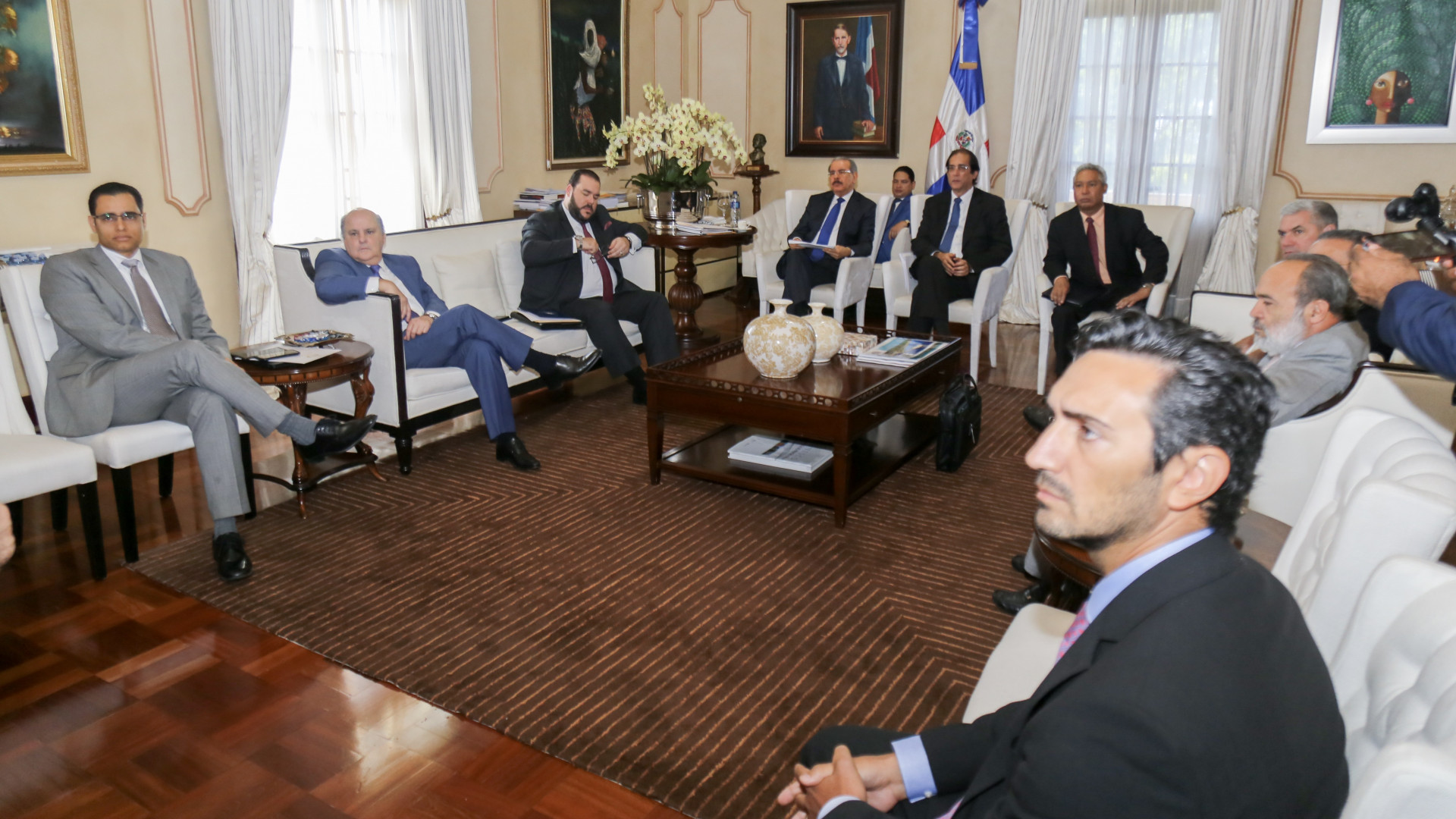 Encuentro del presidente Danilo Medina con integrantes del equipo gubernamental, constituido en abril del presente año, que estuvo asesorado por dos empresas españolas especialistas en diseño y operación de puertos.