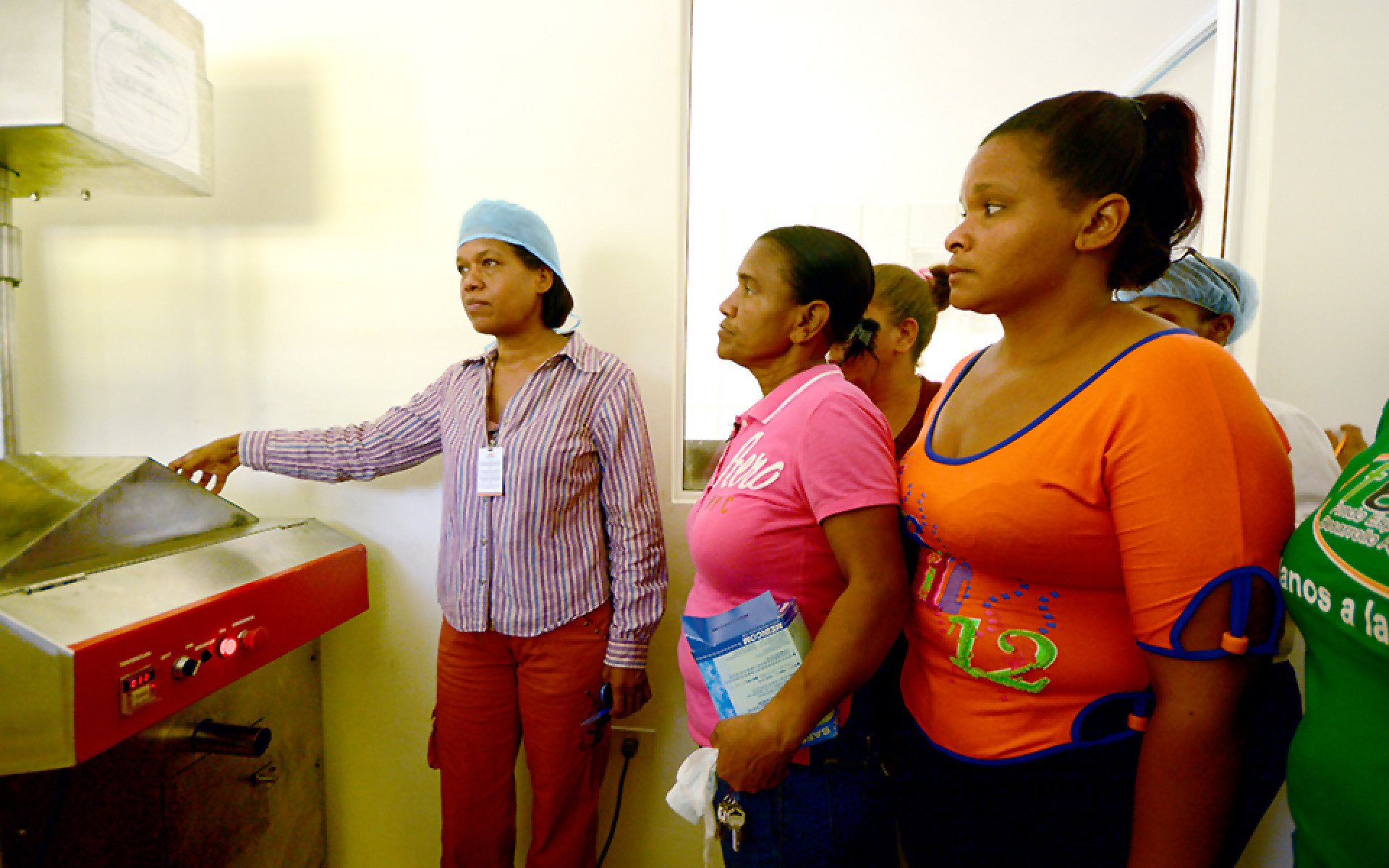 Mujeres de la comunidad mientras reciben explicaciones y conocen las instalaciones de la planta de producción de la Asociación Mujeres Unidas para Avanzar de Gaspar Hernández.