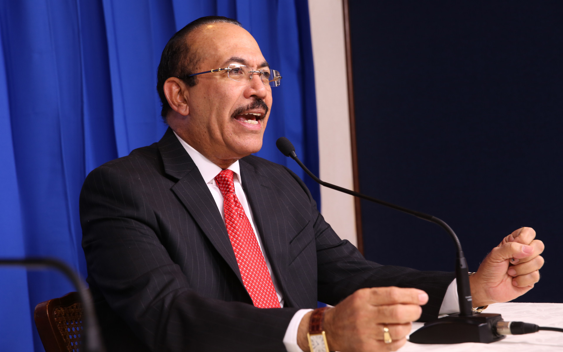 Ministro de Agricultura, Luis Ramón Rodríguez durante su exposición, donde informó que en el año 2013 la exportación de productos no tradicionales creció en un 23 por ciento, reportando ganancias para el país por unos 1,200 millones de dólares.