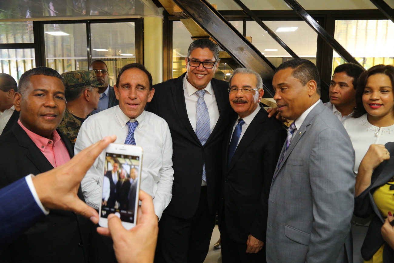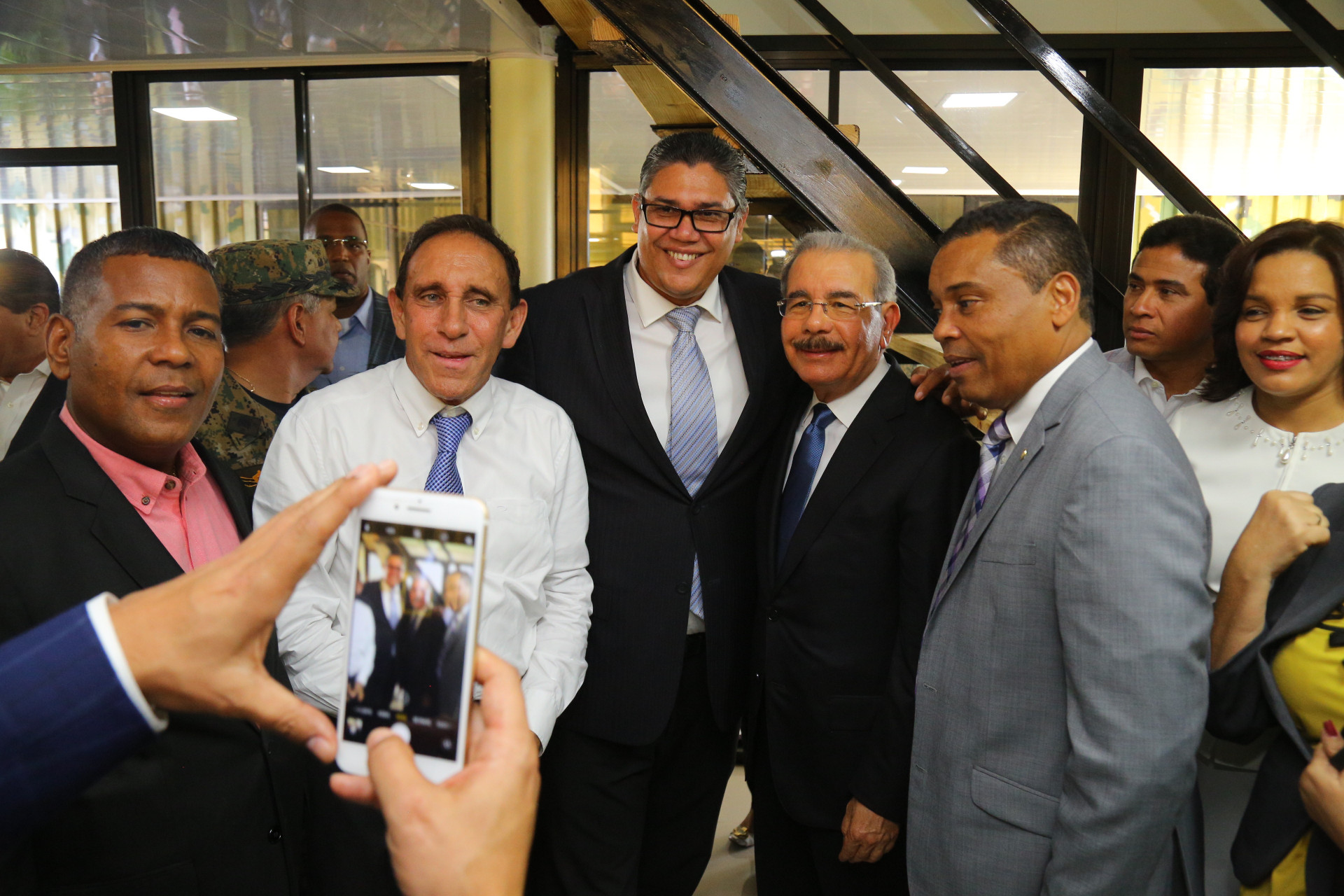 El presidente Danilo Medina, el Dr. Cruz Jiminián y otros participantes en el acto inaugural de la obra.