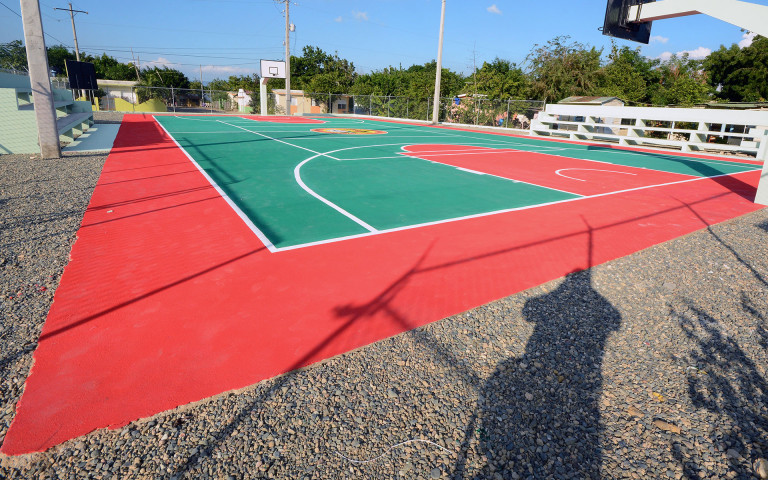 Vista de la cancha deportiva solicitada por la juventud de Cana Chapetón, Montecristi, otra promesa cumplida por el Gobierno en favor de comunidades marginadas y olvidadas.