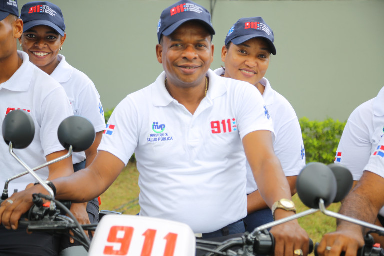 Integrantes del Sistema Nacional de Atención a Emergencias y Seguridad 911 en San Pedro de Macorís,