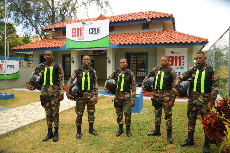 Integrantes del Sistema Nacional de Atención a Emergencias y Seguridad 911 en San Pedro de Macorís,