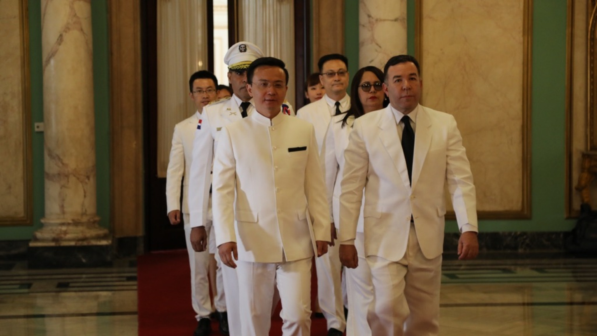 Embajador de la República Popular China, Zhang Run, durante ceremonia oficial de presentacioción.