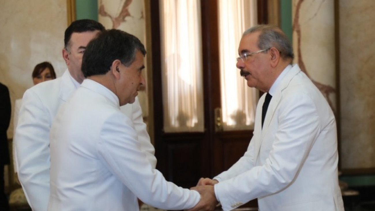 Danilo Medina, presidente de la República Dominicana, recibe cartas credenciales del nuevo embajador de República de Chile, Romilio Guillermo Gutiérrez.