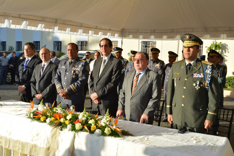 El ministro de la Presidencia, Gustavo Montalvo, encabezó el acto de entrega de 300 camionetas a la Policía Nacional para uso del nuevo Sistema Nacional de Atención a Emergencia y Seguridad 9-1-1. Integran la mesa de honor el ministro de Interior y Policía, Ramón Fadul, el jefe de la Policía Nacional, mayor general Manuel Castro Castillo, entre otras autoridades presentes en el acto celebrado en la explanada frontal del Palacio de la institución del orden.