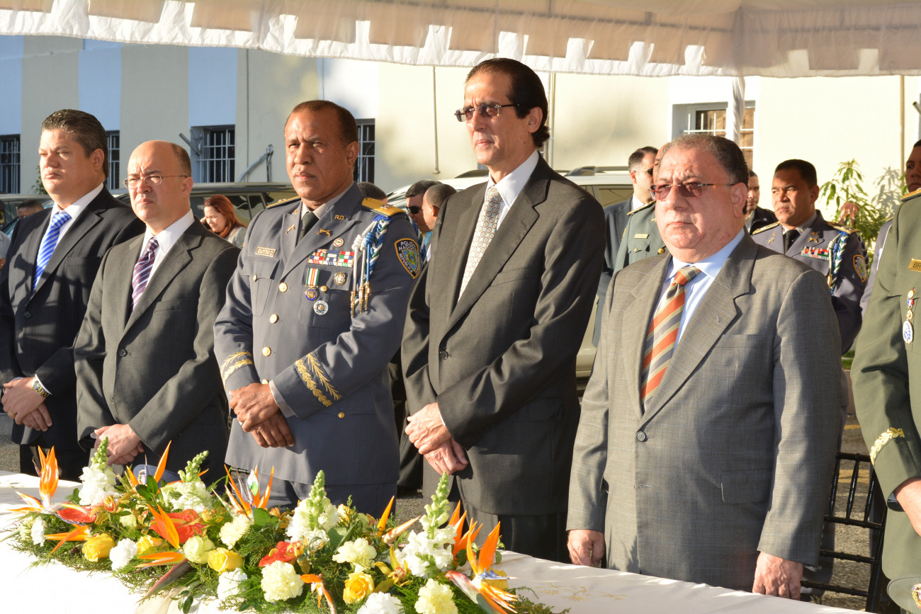 El ministro de la Presidencia, Gustavo Montalvo, encabezó el acto de entrega de 300 camionetas a la Policía Nacional para uso del nuevo Sistema Nacional de Atención a Emergencia y Seguridad 9-1-1. Integran la mesa de honor el ministro de Interior y Policía, Ramón Fadul, el jefe de la Policía Nacional, mayor general Manuel Castro Castillo, entre otras autoridades presentes en el acto celebrado en la explanada frontal del Palacio de la institución del orden. Foto: Presidencia República Dominicana