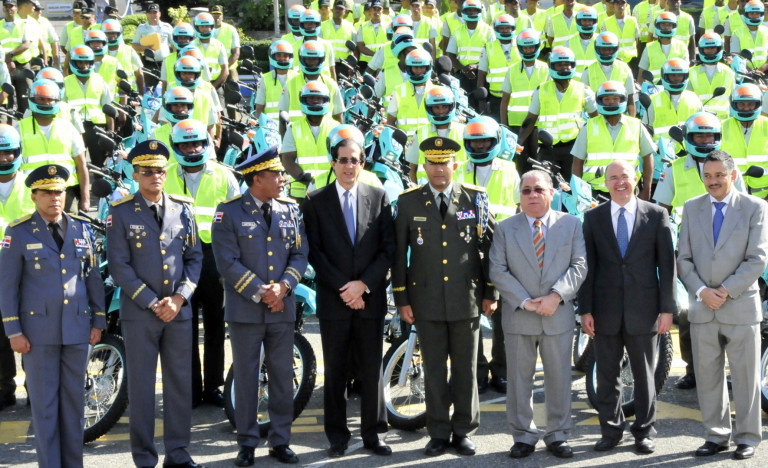 El Ministerio de la Presidencia entregó una flotilla de 200 motocicletas todo terreno a la Autoridad Metropolitana de Transporte (AMET), para que sean utilizadas en la fiscalización del tránsito en el Distrito Nacional, en un acto realizado en la explanada frontal del Palacio de la Policía Nacional donde estuvieron presentes el ministro de Interior y Policía, José Ramón Fadul; el Procurador, Francisco Domínguez Brito; el Jefe de la Policía Nacional, mayor general Manuel Castro Castillo; el Director de la DNCD, mayor general Julio César Souffront; y el general Frener Bello Arias, inspector general de la Policía Nacional.