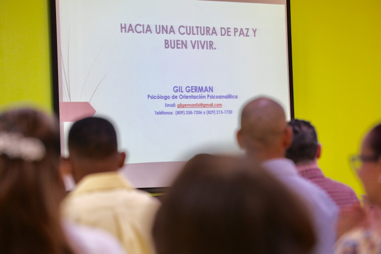 Participantes en el Seminario “Intervención Psicosocial para la paz” en el sector Herrera, Santo Domingo Oeste, organizado por el Despacho de la Primera Dama, a través del proyecto “Por una Cultura de Paz”.