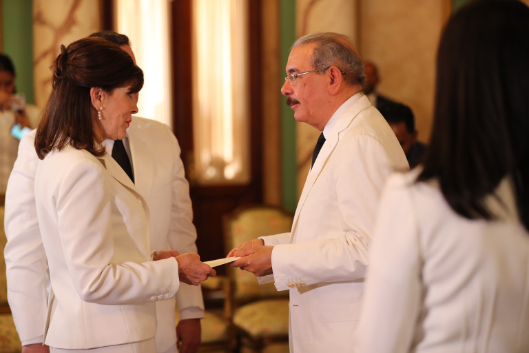 El presidente de la República, Danilo Medina recibe a Robin S. Bernstein, nueva embajadora de los Estados Unidos de América.