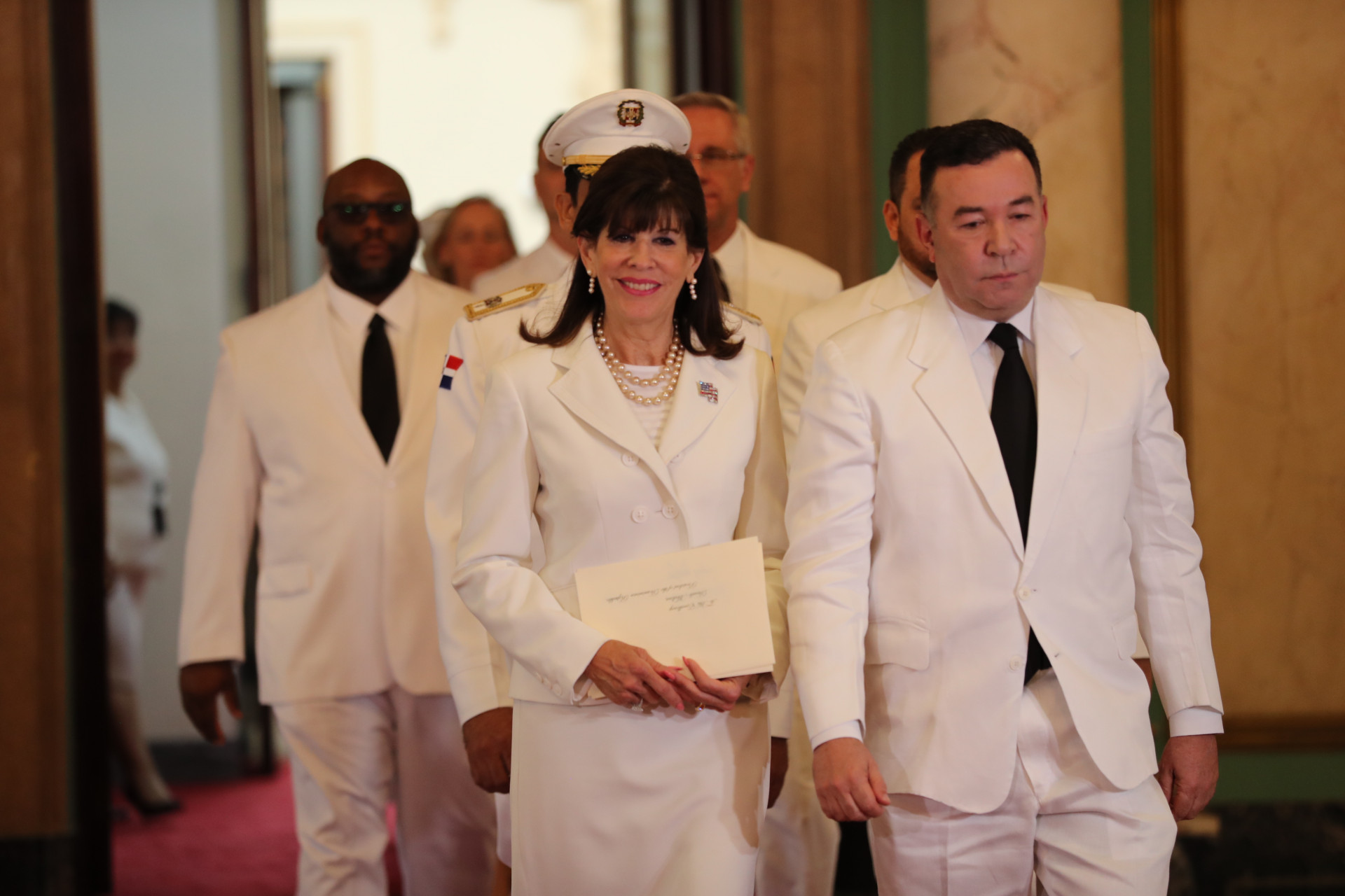 Robin S. Bernstein, nueva embajadora de los Estados Unidos de América, a su llegada a la solemne ceremonia que tuvo lugar en el Salón de Embajadores del Palacio Nacional.